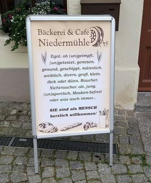 (b1) Schild am Eingang einer Bäckerei in Deutschland; 30.08.2021; aus https://gettr.com/user/koline